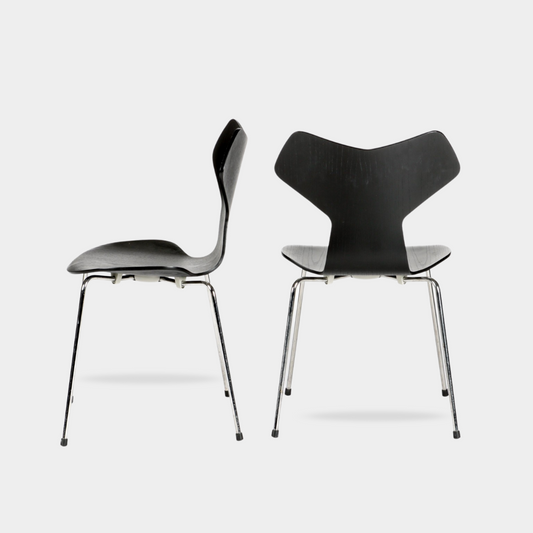 Sæt af Grand Prix stole, model 3130. Sortfarvet ask, Stel af forkromet stel